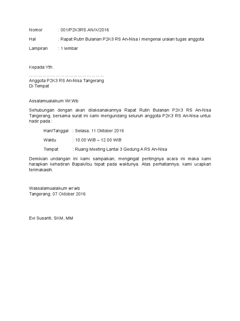 Contoh Surat Undangan Rapat | Undangan, Surat, Buku