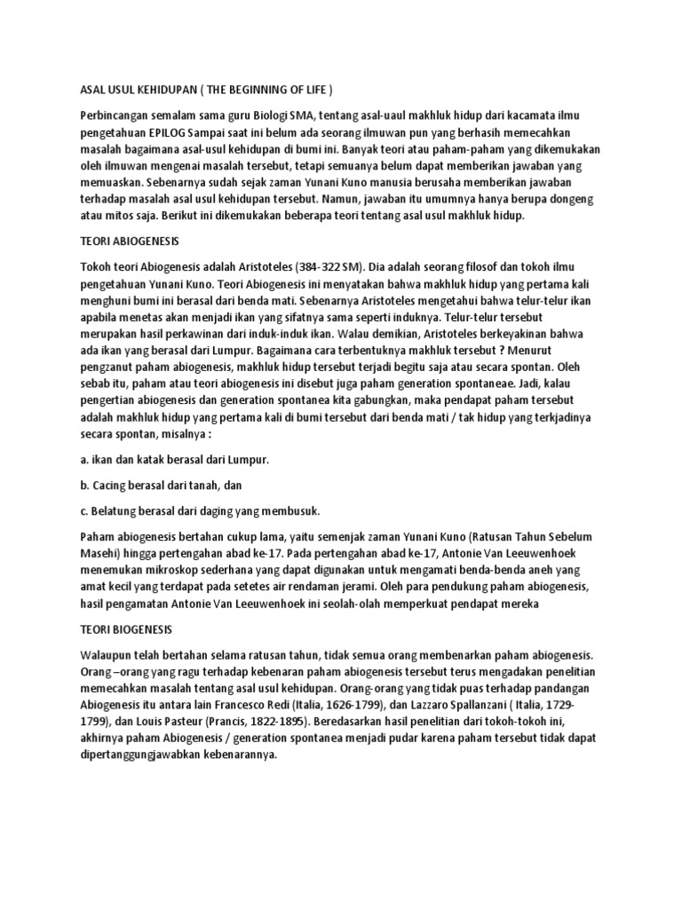 PDF) Teori-teori Asal Usul Kehidupan dan Pembuktiannya | siska …