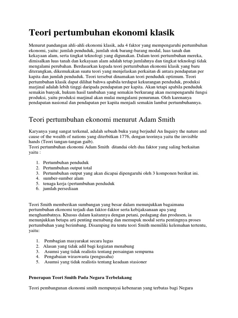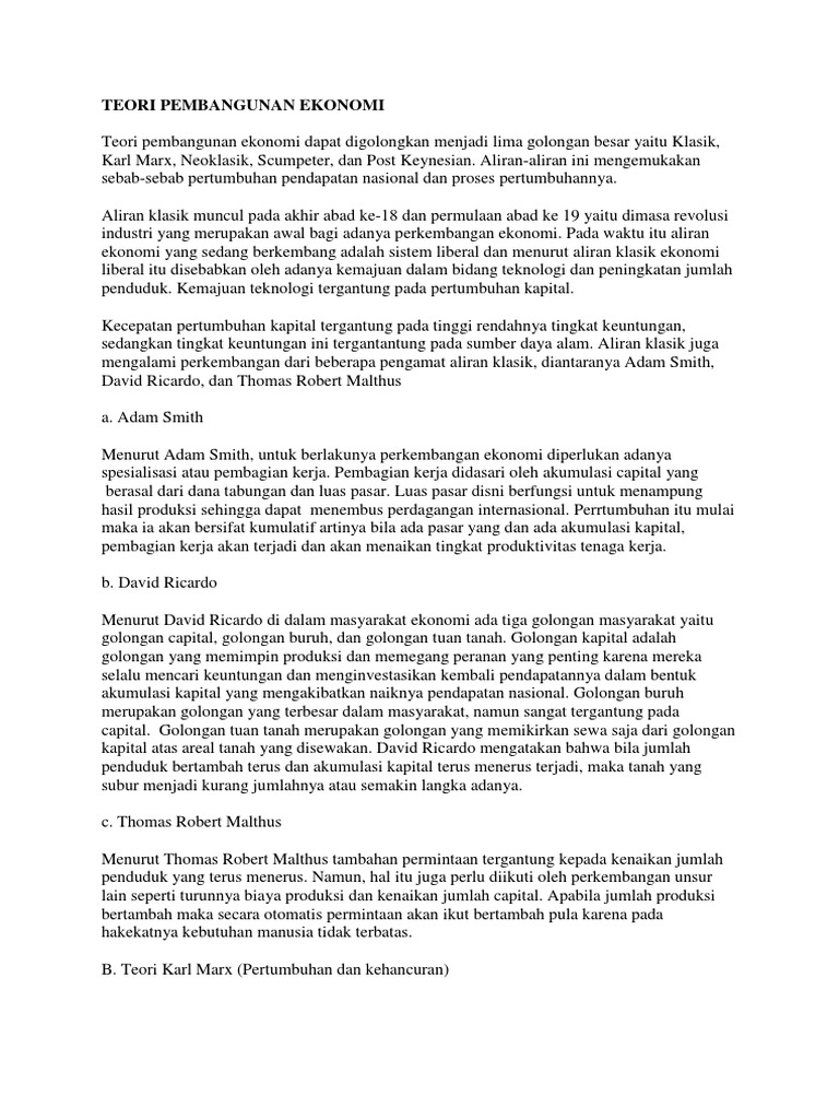 Teori Ekonomi Klasik: Teori Pembangunan Ekonomi dan Teori …