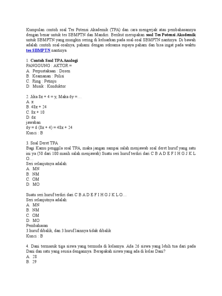 Contoh soal tes potensi akademik dan pembahasannya pdf - Info Dewasa Terbaru