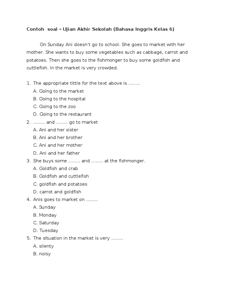 Soal Usbn Bahasa Inggris Kelas 6 - placesfasr