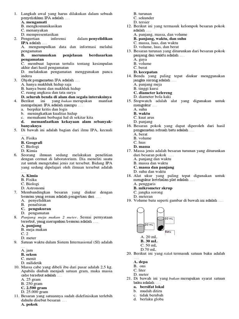 contoh soal IPA materi Pengukuran, Besaran, dan Satuan