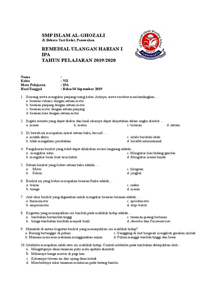 Kumpulan Soal IPA Kelas 7 SMP {Kurikulum 2013} Materi Pengukuran {Satuan Baku dan Besaran Pokok} - Your Chemistry A+