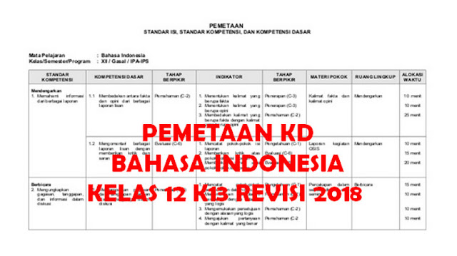 Pemetaan KD Bahasa Indonesia Kelas 12 K13 Revisi 2018 - SEKOLAH INTI