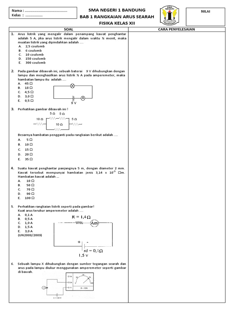 Contoh Soal Dan Pembahasan Rangkaian Arus Searah Kelas 12 - Contoh Soal Terbaru